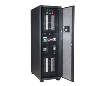 智能配电柜集成了UPS输入输出和维护旁路开关,在采用三断路器机制的情况下,能使UPS与公共市电隔离。根据UPS的容量不同,将配置不同规格的开关。