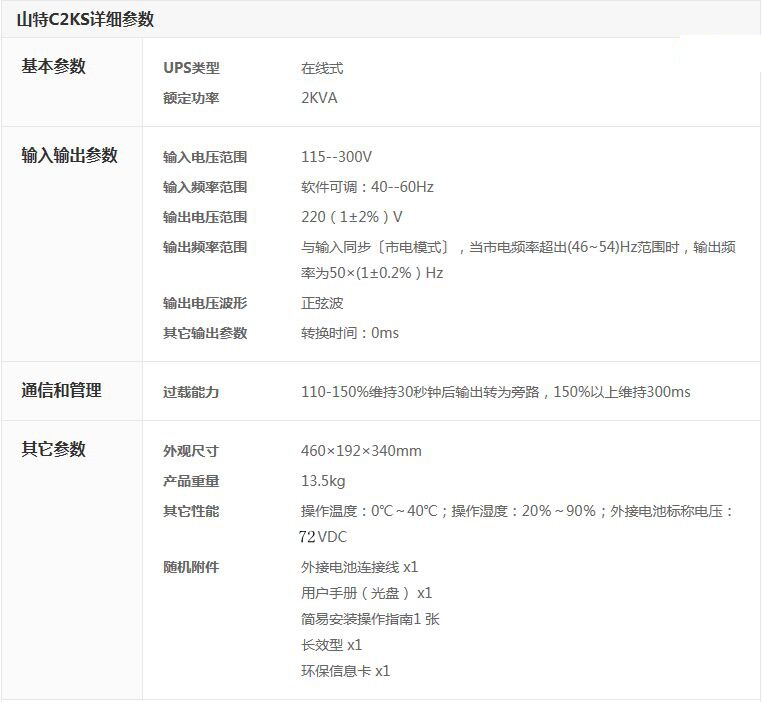 <商品名称>:山特C2KS/1600W 在线式长延时机 【需外接电池72V】